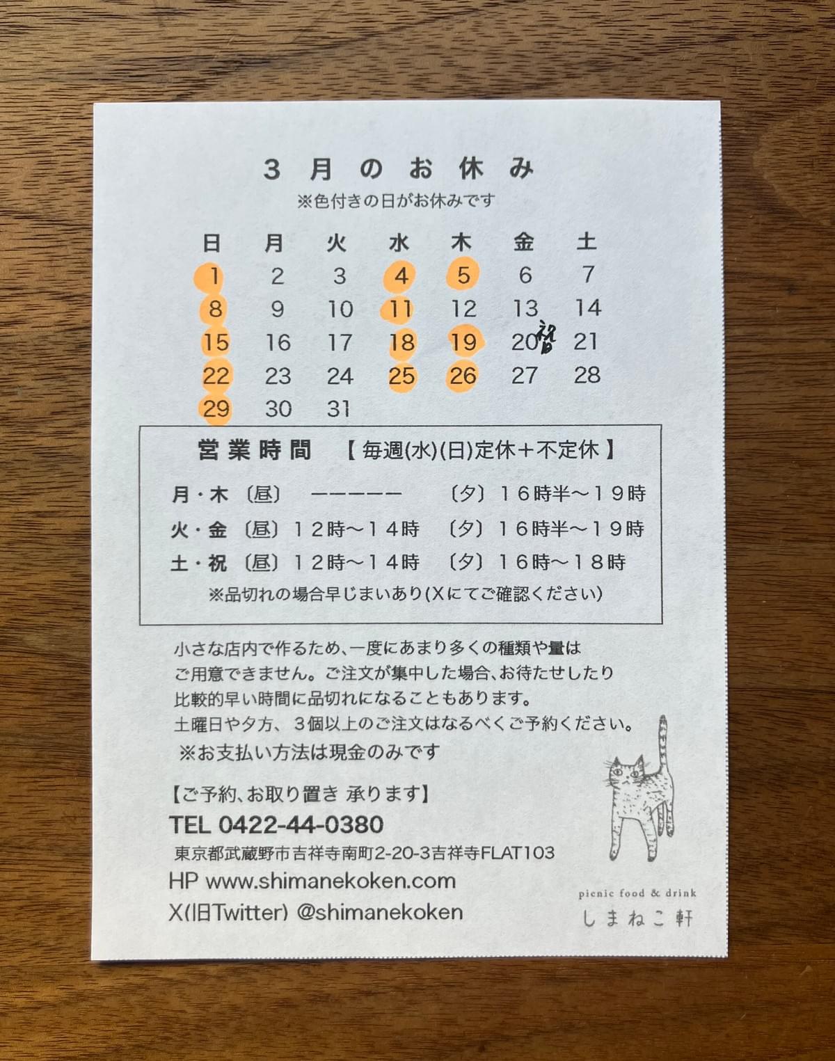 【毎週(水)(日)定休+不定休】